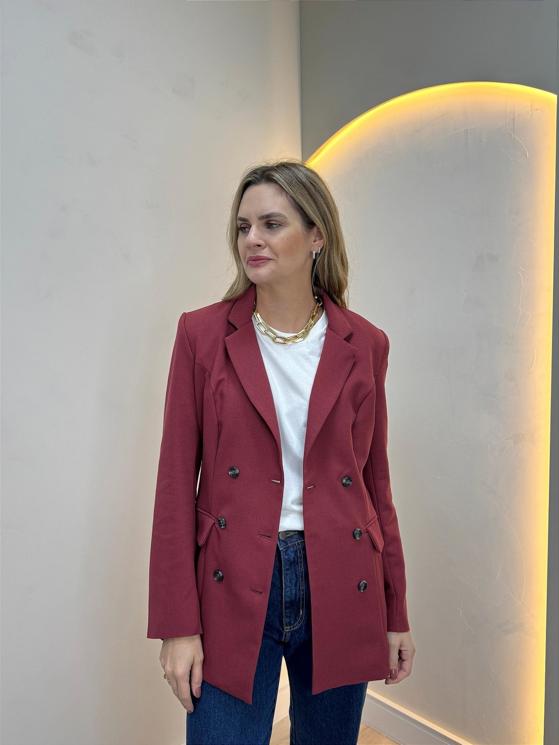 O blazer Rose é uma peça extremamente versátil e atemporal, conta com lapela chanfrada, fechamento frontal por botões, bolsos frontais com detalhe embutido, mangas longas, ombreiras internas e forro embutido que garante conforto ao vestir. O comprimento levemente alongado e a modelagem acinturada proporcionam um visual imponente, com equilíbrio entre elegância e modernidade.