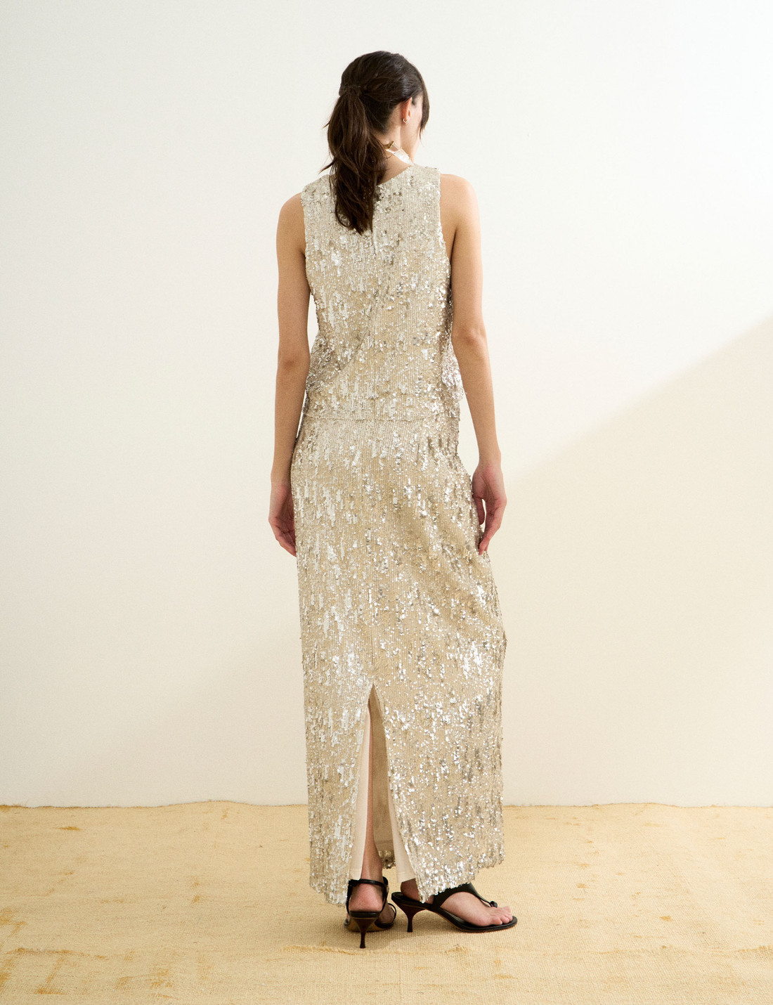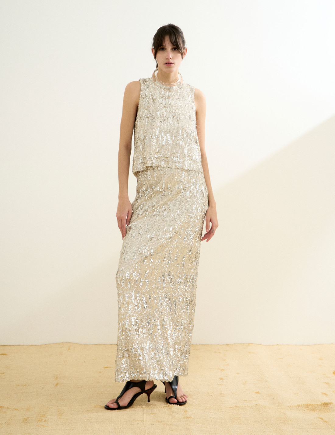Feita em tecido de paetê, a Blusa de Paetê Paradiso é a escolha perfeita para quem busca sofisticação com um toque de ousadia. O brilho elegante dos paetês transforma a peça em um verdadeiro destaque no look, ideal para composições noturnas ou para elevar produções mais casuais com estilo e personalidade. Com decote arredondado, fechamento delicado por botão nas costas e modelagem reta, a peça oferece conforto sem abrir mão do caimento refinado.