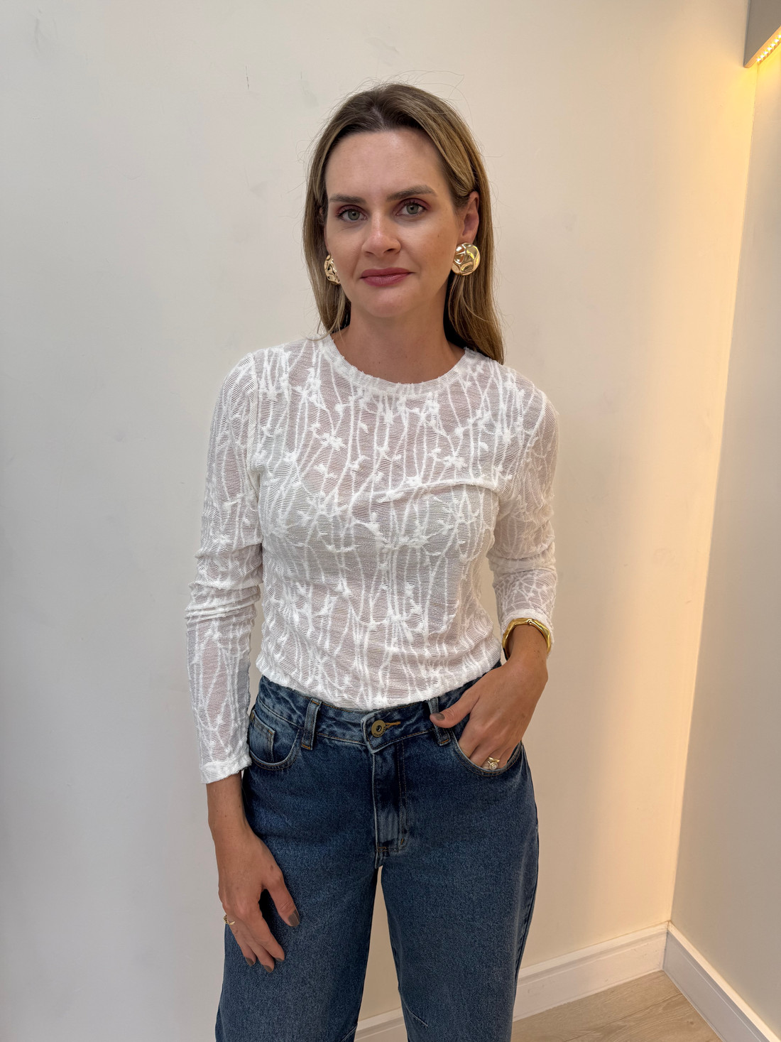 A Blusa Texturizada Lívia é uma peça delicada e sofisticada, ideal para compor produções elegantes com leveza e personalidade. Confeccionada em poliéster com elastano, o tecido possui estrutura leve e toque suave. Seu grande destaque está na textura trabalhada em relevo , que cria um efeito visual rico e diferenciado. O modelo conta com mangas longas e modelagem levemente ajustada, valorizando a silhueta sem abrir mão do conforto. O decote redondo e os acabamentos sutis reforçam a proposta refinada da peça.
