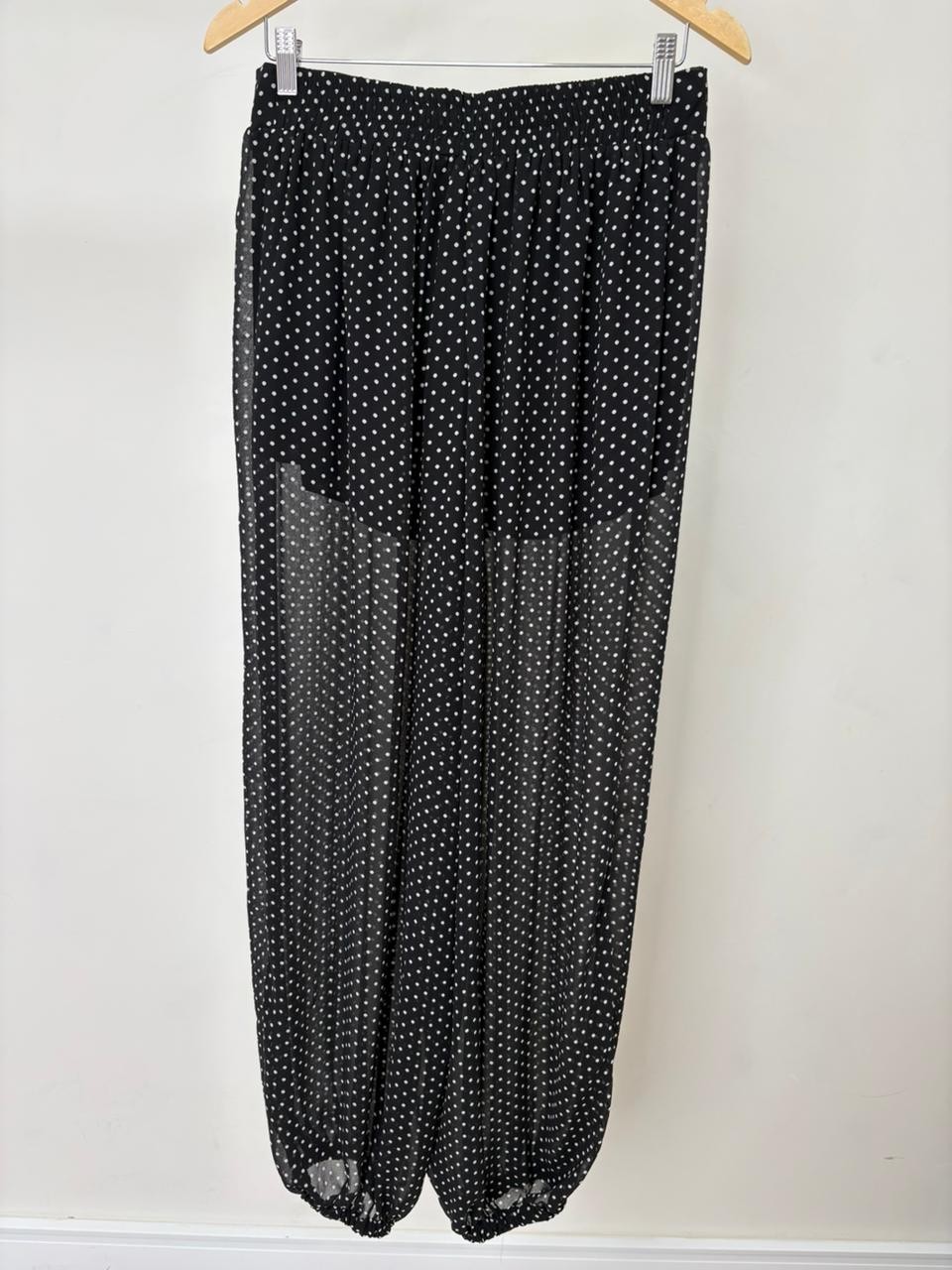 A Calça Aladim de Poá Kiara é a escolha perfeita para quem busca conforto com estilo. Com modelagem soltinha e caimento fluido, ela une modernidade e praticidade em uma peça versátil que vai do dia a dia ao look mais arrumado. Confeccionada em crepe chifon a calça possui forro embutido até a altura da coxa, garantindo conforto e segurança. O cós com elástico oferece ajuste perfeito ao corpo e praticidade no vestir, enquanto o acabamento no tornozelo cria o efeito característico do estilo Aladin, trazendo ainda mais personalidade para o visual. A estampa de poá minimalista é atemporal e adiciona aquele charme extra que nunca sai de moda.