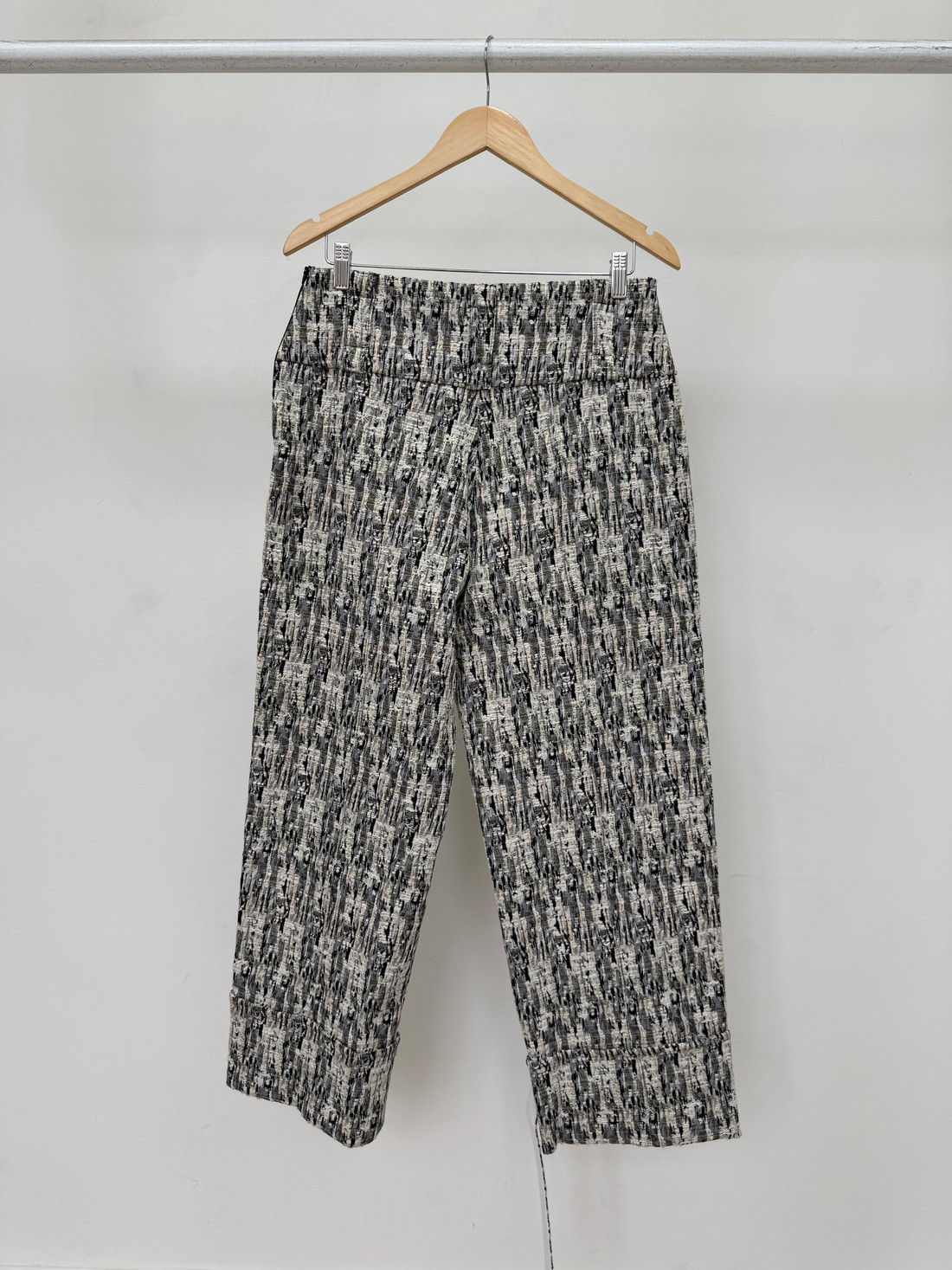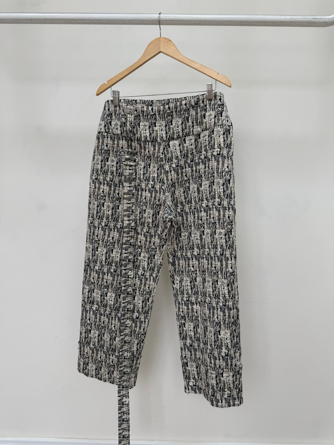 A Calça de Jacquard com Cinto Roma é confeccionada em jacquard com textura sofisticada e padronagem marcante. Desenvolvida em poliéster, algodão, viscose e elastano, que proporciona estrutura e conforto. A peça conta ainda com forro interno garantindo maior conforto e melhor acabamento. O modelo possui cintura estruturada com passantes e acompanha cinto do mesmo tecido, permitindo ajuste na cintura e valorizando a silhueta. O fechamento é feito por zíper lateral, que mantém o visual limpo e elegante na parte frontal da peça. O tecido jacquard cria um efeito visual texturizado que destaca a peça e traz sofisticação ao visual. A barra possui acabamento mais largo, reforçando o design contemporâneo e equilibrando a silhueta.