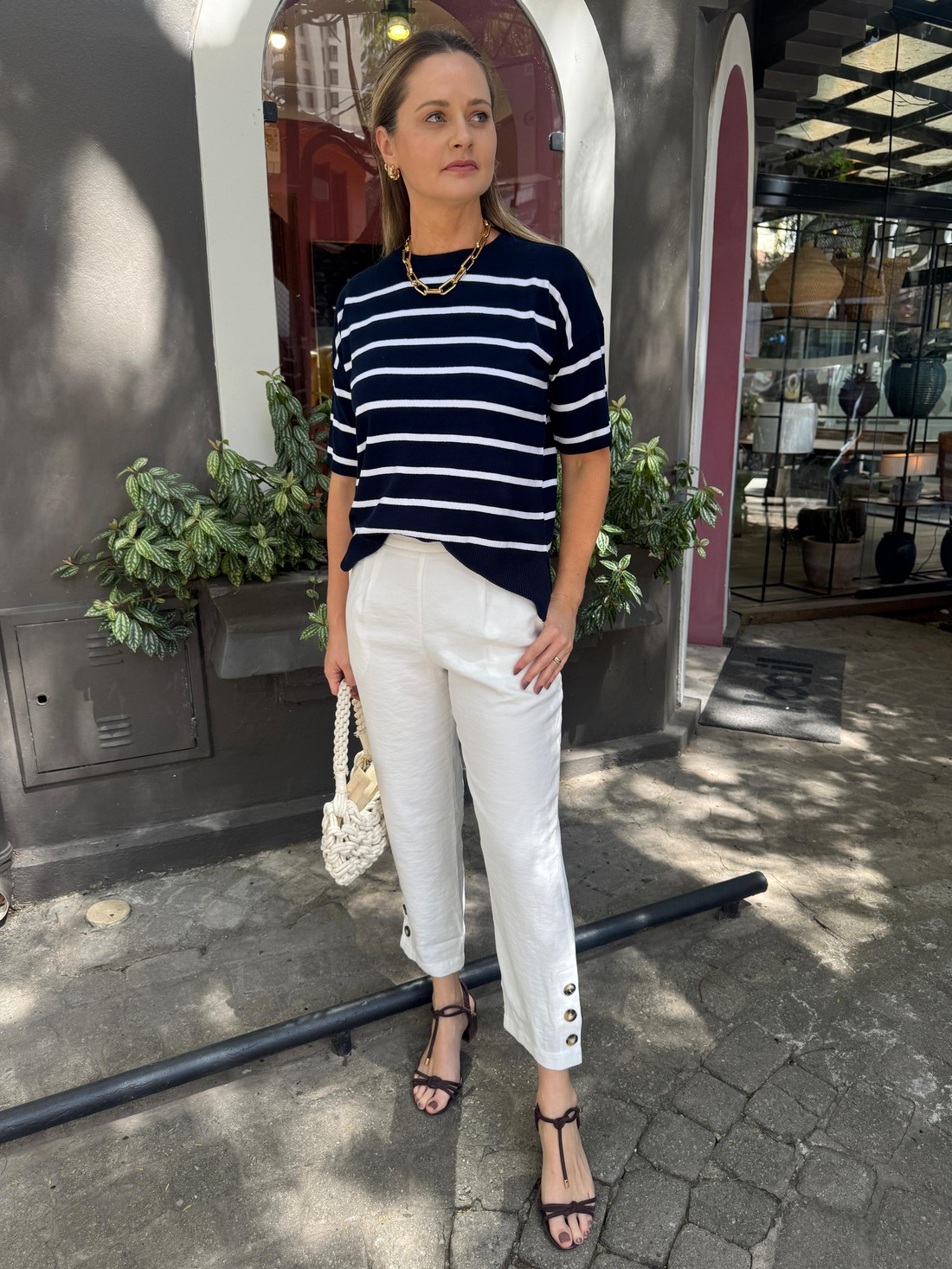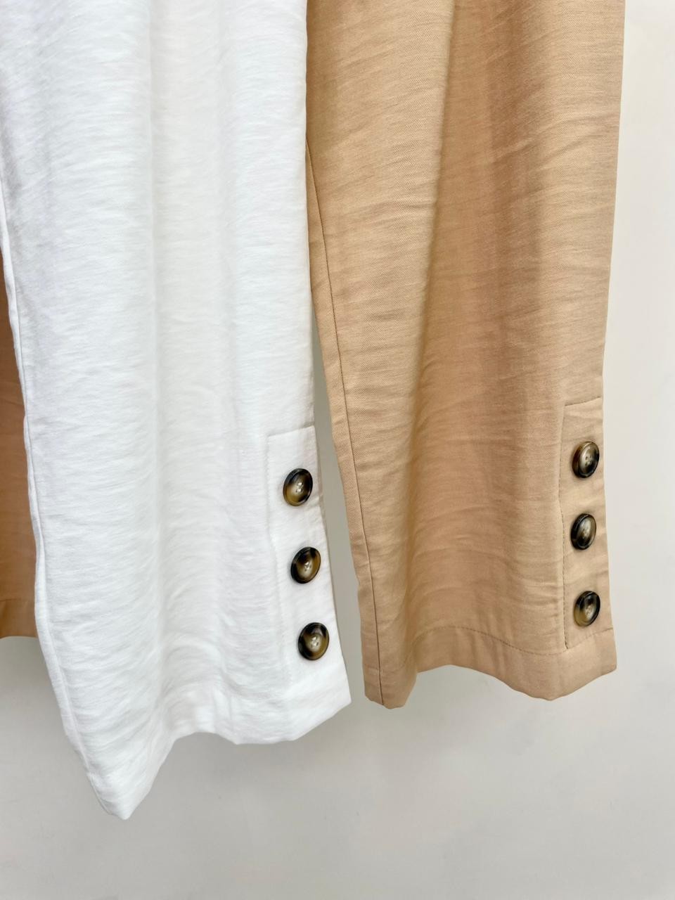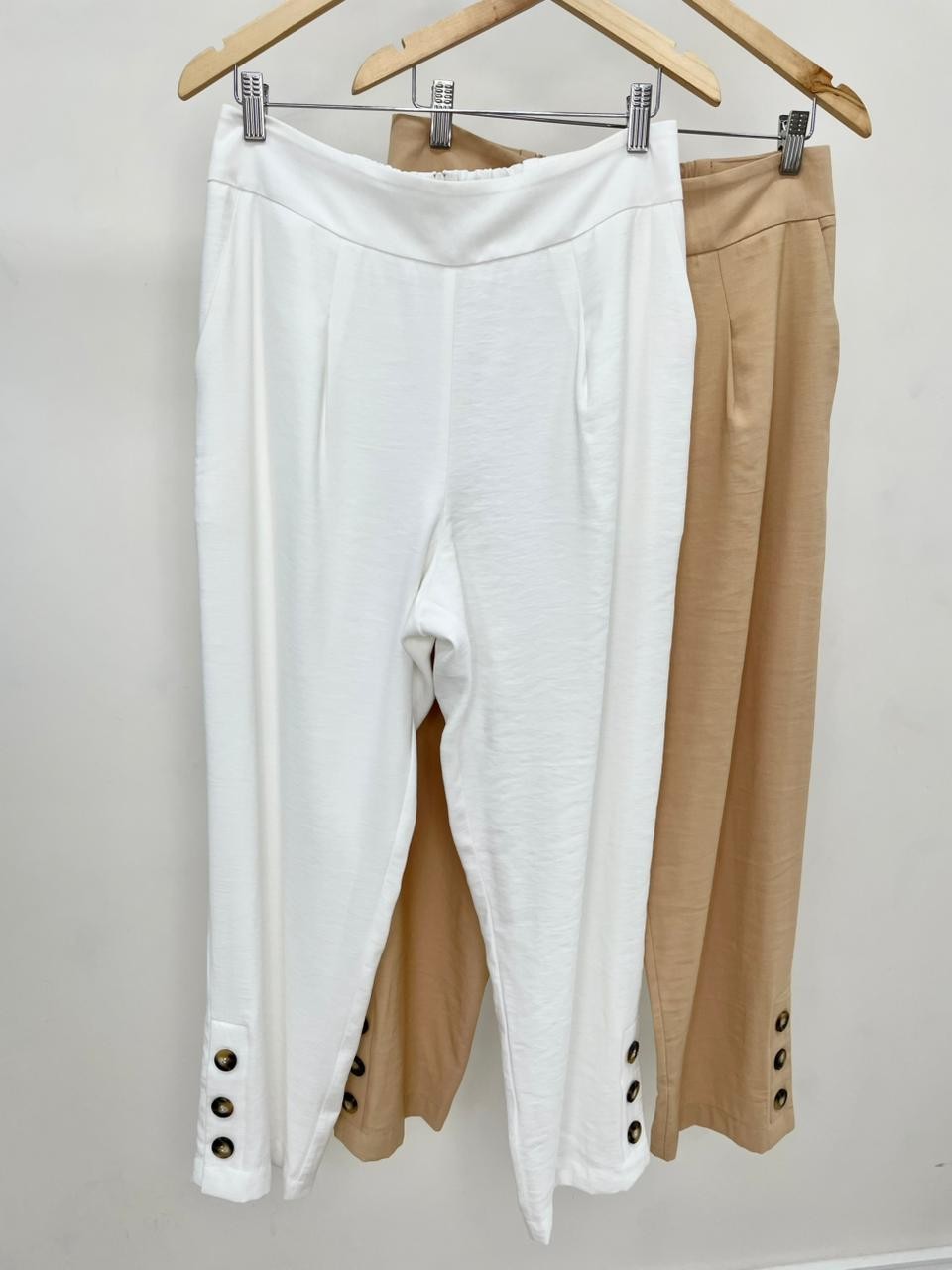 A Calça Greta é a escolha perfeita para quem busca unir conforto, sofisticação e praticidade em uma única peça. Com caimento impecável e detalhes pensados para o uso cotidiano, ela traz modernidade à alfaiataria tradicional. Confeccionada em viscose, essa calça apresenta modelagem cenoura , com cintura marcada, quadril levemente mais solto e pernas afuniladas – ideal para valorizar a silhueta com elegância. Os bolsos laterais funcionais adicionam praticidade, enquanto o charme fica por conta dos botões decorativos posicionados nas laterais da barra , que conferem um toque moderno e diferenciado. Pensando no ajuste perfeito, o modelo conta com elástico e zíper discretos no cós traseiro, oferecendo conforto e adaptação ao corpo.