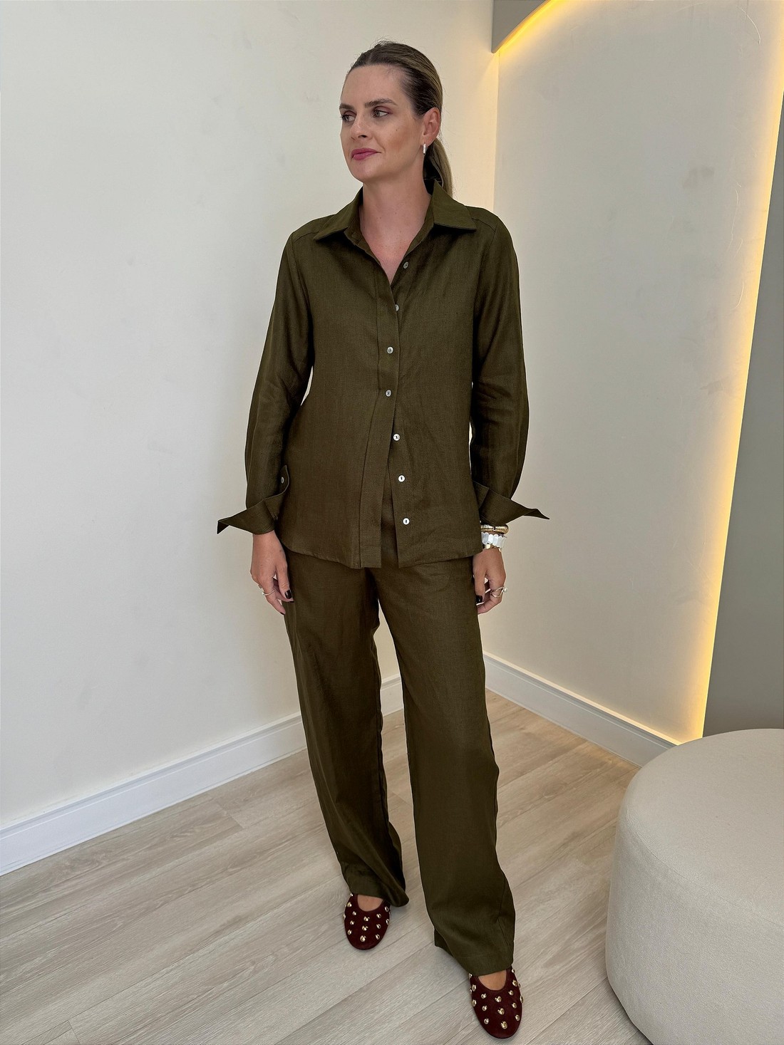 A Calça Trancoso feita linho, garante leveza e respirabilidade. Com modelagem mais solta ela proporciona conforto e liberdade de movimento, os bolsos laterais adicionam praticidade ao design, enquanto as cores neutras permitem combinações versáteis.