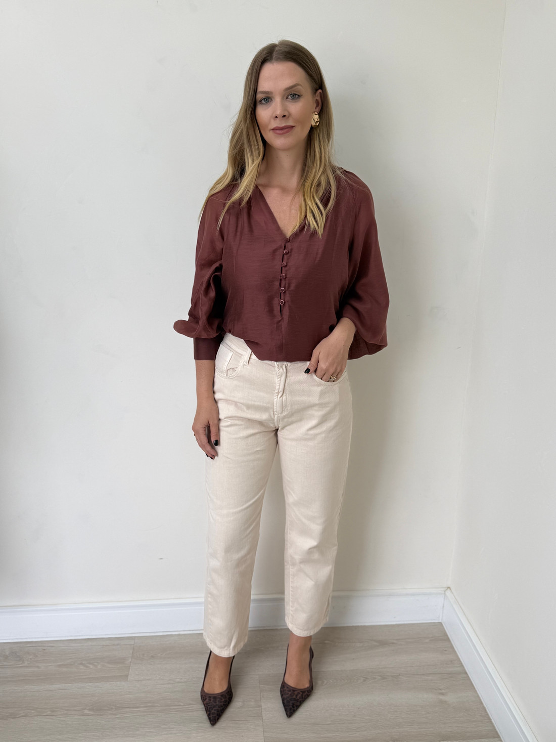 Confeccionada em Liocel, Poliamida e Linho, a Camisa em Liocel Noemi oferece caimento suave e movimento natural, transmitindo frescor e elegância sutil. O modelo apresenta decote em V, fechamento por botão na vista, franzidos nos ombros e nas costas, e mangas compridas com fechamento por botão no punho, que adicionam charme e delicadeza ao visual. Leve e sofisticada, é perfeita para produções que pedem conforto e elegância, sendo uma peça versátil e atemporal que valoriza o movimento e a feminilidade com naturalidade. A camisa acompanha regata interna, garantindo conforto e praticidade na hora de compor o look.