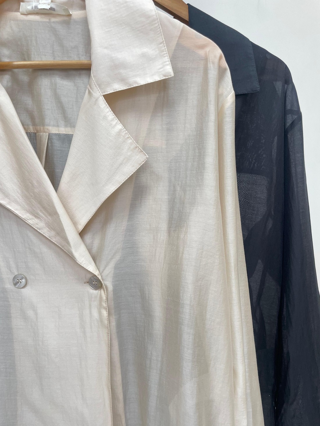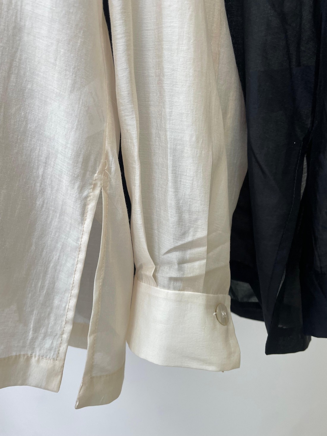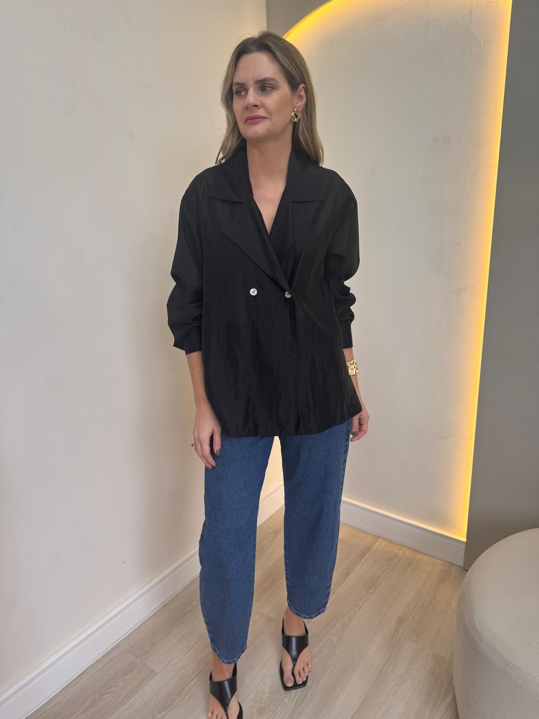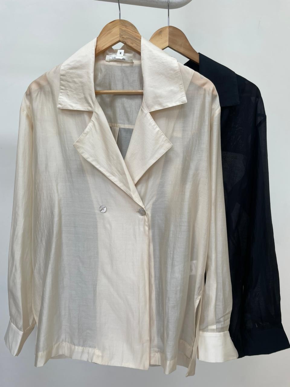 Confeccionada em liocel toque de seda, a Camisa em Liocel Viviane combina suavidade ao toque, caimento elegante e uma leve transparência que valoriza a delicadeza do visual. O tecido acetinado confere um brilho sutil e refinado, ideal para quem busca elegância com conforto. O destaque fica por conta da gola notched, inspirada no blazer clássico, que adiciona sofisticação à silhueta leve e fluida. A modelagem é ampla, com fechamento por botões frontais e mangas longas finalizadas com botão no punho, garantindo versatilidade e liberdade de movimento. Esta é uma peça curinga, que pode ser usada sozinha para um visual leve e feminino, ou em sobreposições modernas que exploram contrastes entre estrutura e suavidade.