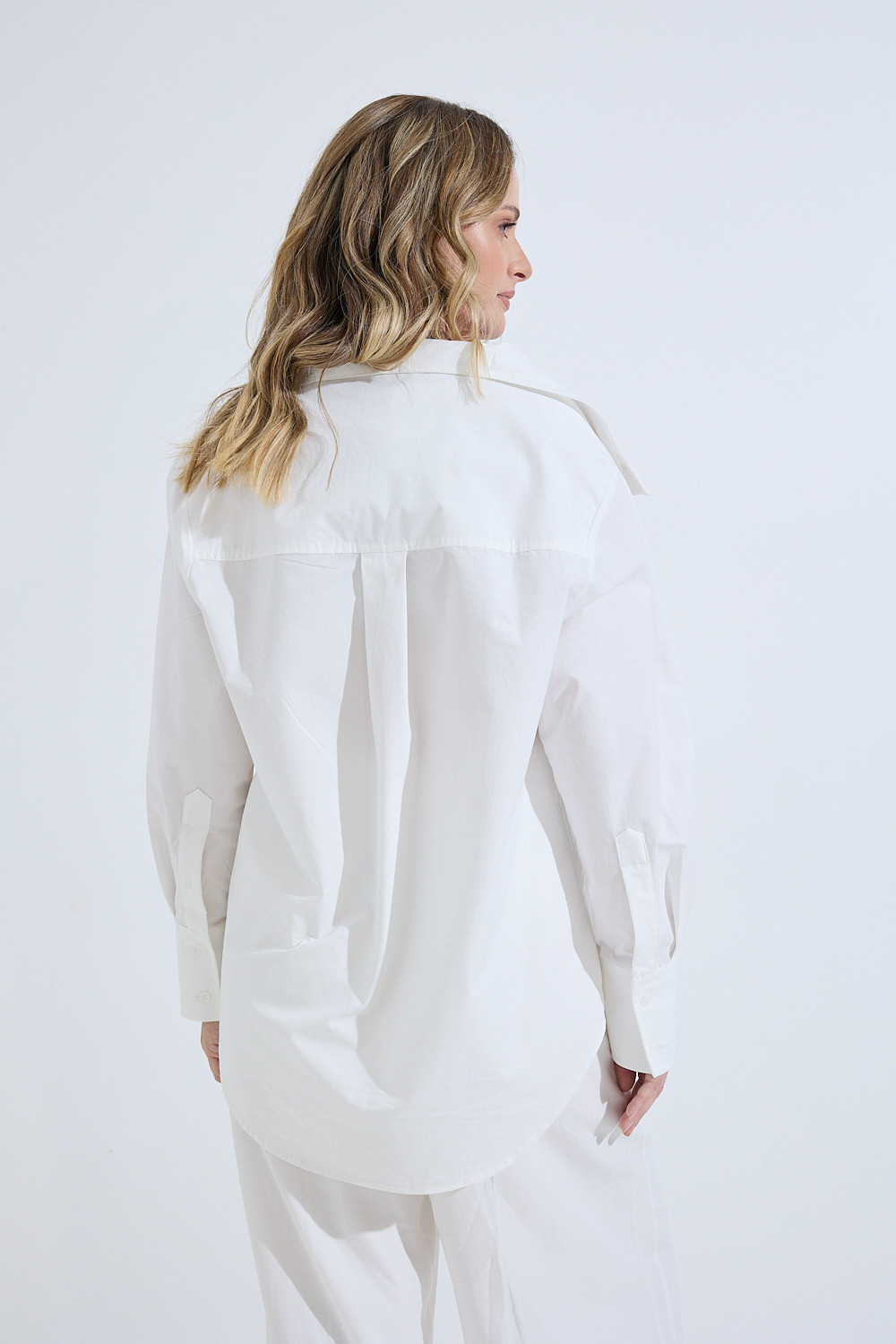 A camisa tricoline Blanca é uma peça clássica e versátil, confeccionada em tricoline leve e respirável. Com um corte reto e solto, ela oferece conforto e um caimento impecável. O destaque da camisa é sua gola larga e estruturada e aberta, que confere um toque de sofisticação e estilo, tornando-a um verdadeiro statement no guarda-roupa. As mangas compridas com punhos ajustáveis permitem personalizar o ajuste. A camisa tricoline blanca é uma adição indispensável, unindo elegância, praticidade e sofisticação em qualquer look!