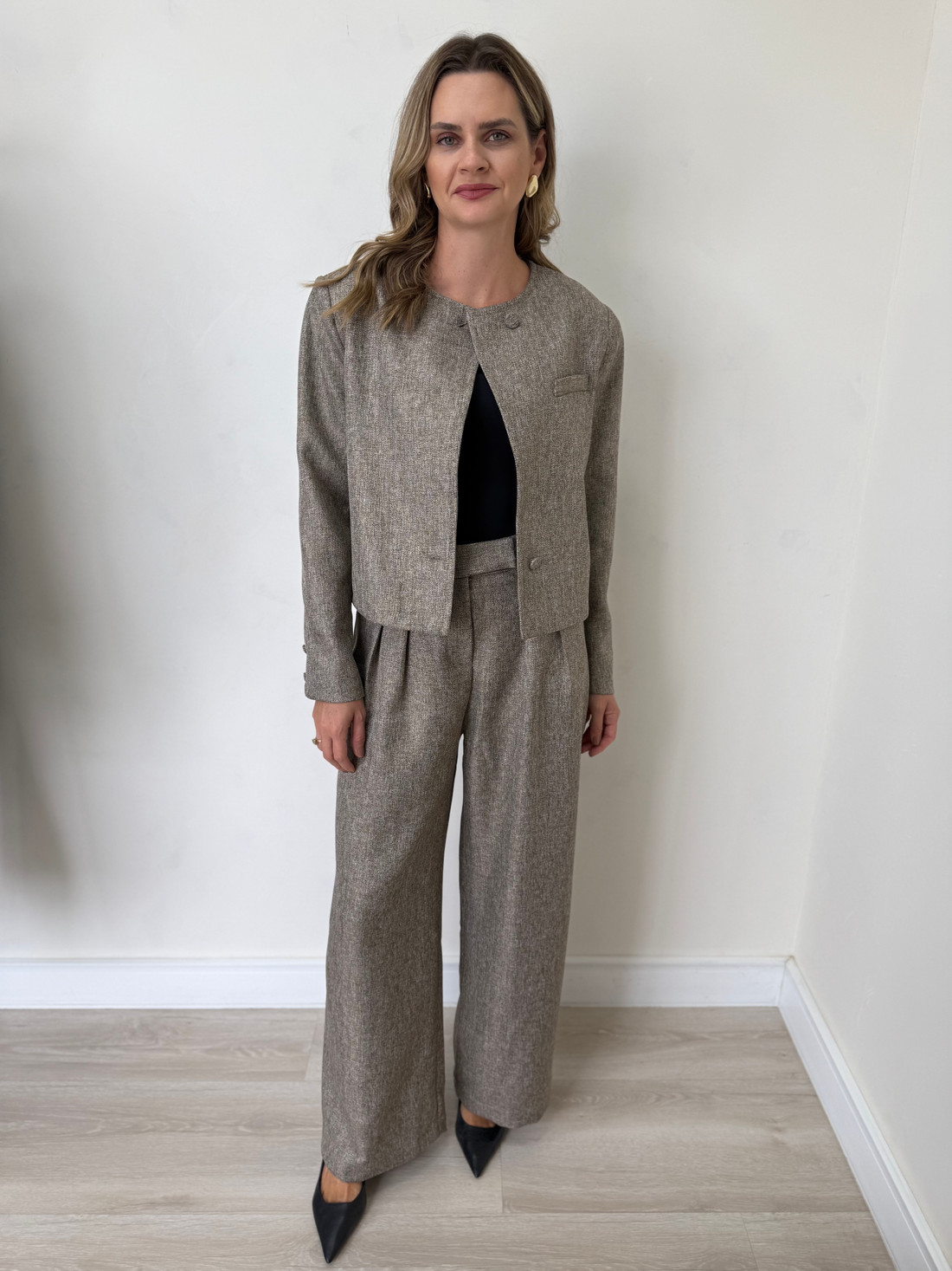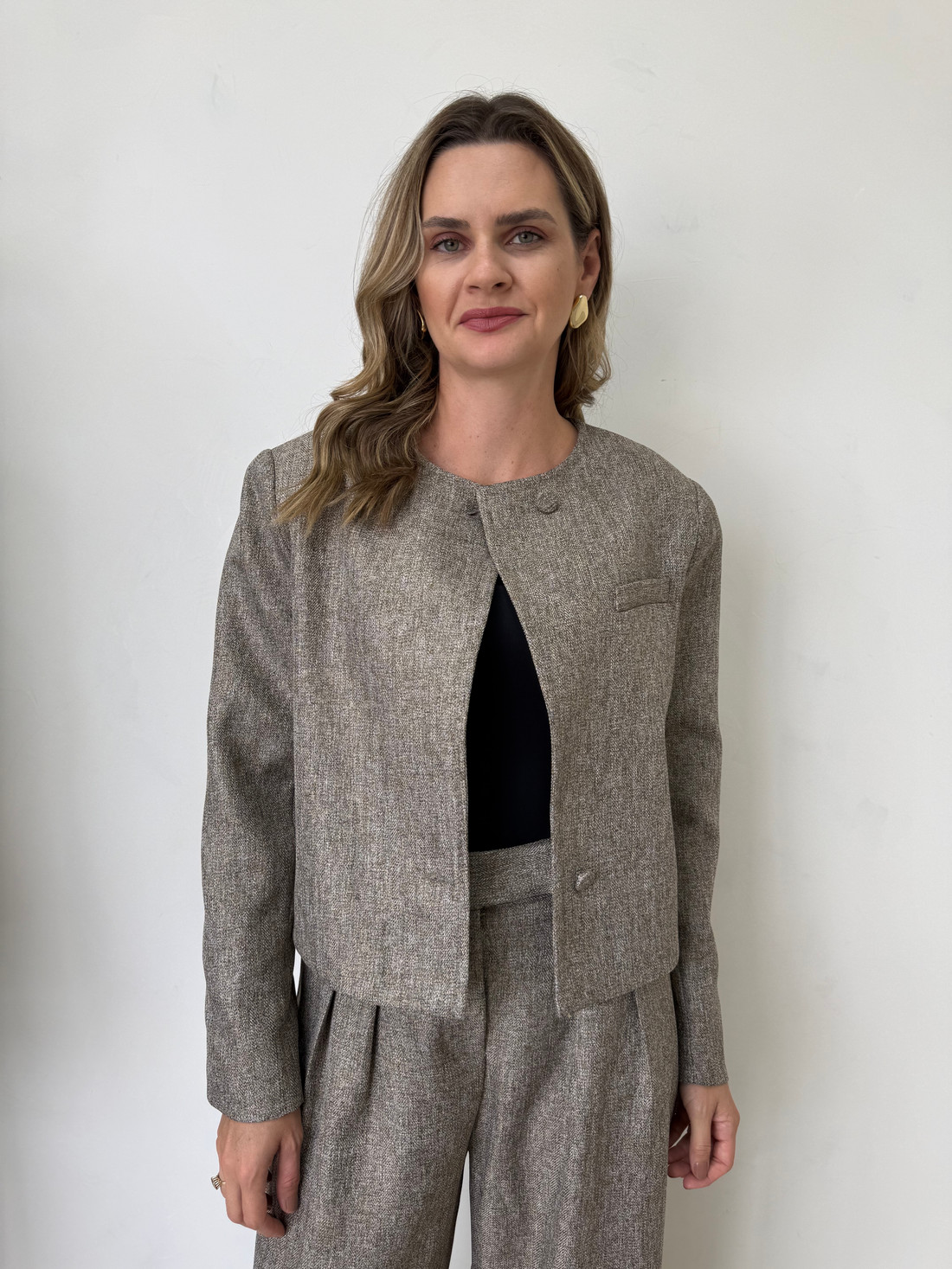 O Casaco Milano é confeccionado em poliéster, com estrutura elegante e acabamento refinado que traz sofisticação às produções de meia-estação e inverno. A peça conta com forro interno, proporcionando maior conforto ao vestir e um caimento mais estruturado. O modelo apresenta design minimalista com gola redonda, que valoriza a região do colo e traz um visual moderno e atemporal. O fechamento frontal é feito por botões encapados que acompanham o mesmo tom do tecido, mantendo a proposta clean e sofisticada da peça. Na parte frontal, o casaco conta com um bolso embutido decorativo no lado do busto, que adiciona um detalhe sutil e elegante ao design. As mangas são longas e possuem acabamento com pequenos botões nos punhos, trazendo um toque clássico e delicado à peça.