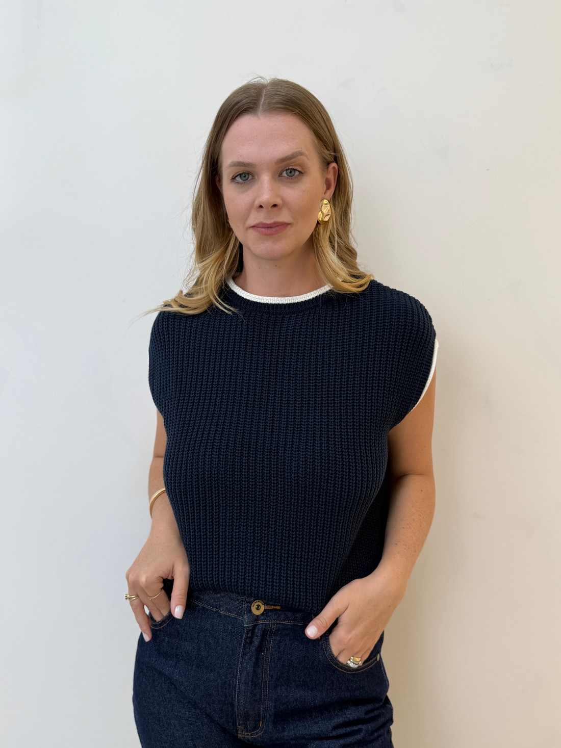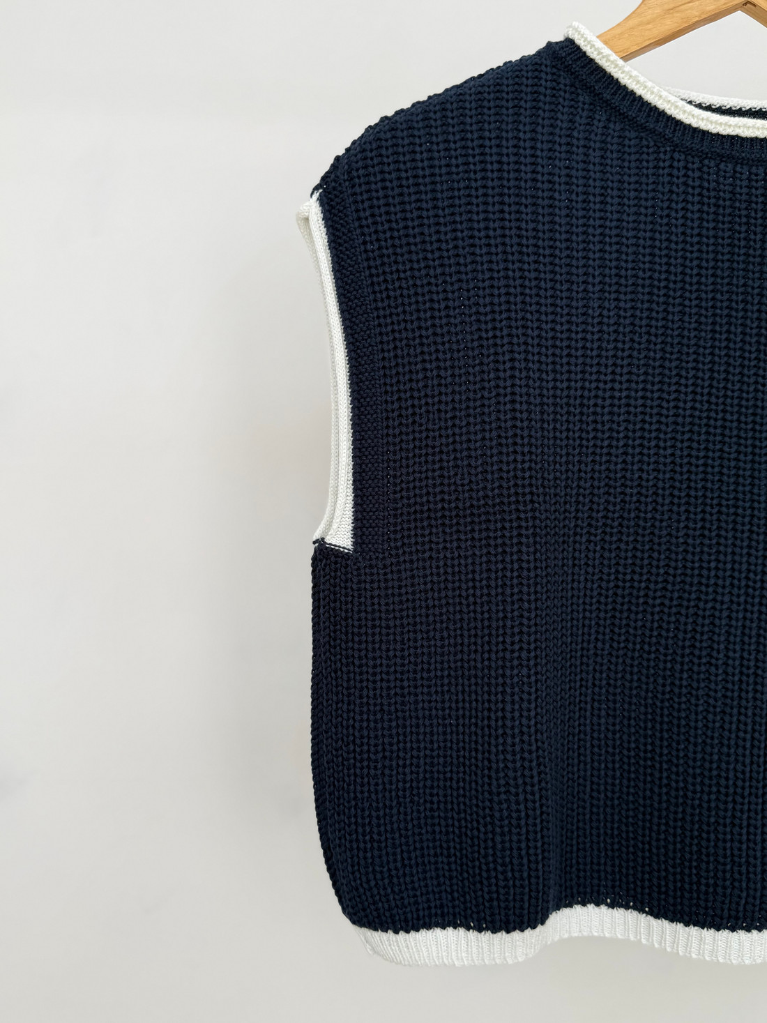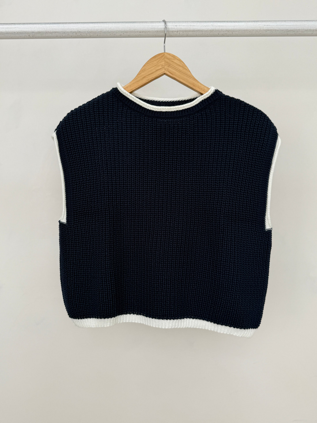 O Colete de tricot Dakota é confeccionado em acrílico, com textura encorpada e toque macio, ideal para composições de meia-estação e sobreposições no inverno. A peça apresenta trama em ponto canelado mais largo, criando um efeito visual estruturado e sofisticado. Possui modelagem reta, com caimento levemente solto ao corpo, proporcionando versatilidade para diferentes combinações. O design sem mangas reforça a proposta moderna da peça, ideal para usar sobre camisas, blusas de manga longa ou até mesmo peças mais ajustadas. O destaque fica por conta do acabamento contrastante em cor clara na gola, cavas e barra, que adiciona um toque contemporâneo e valoriza o visual.