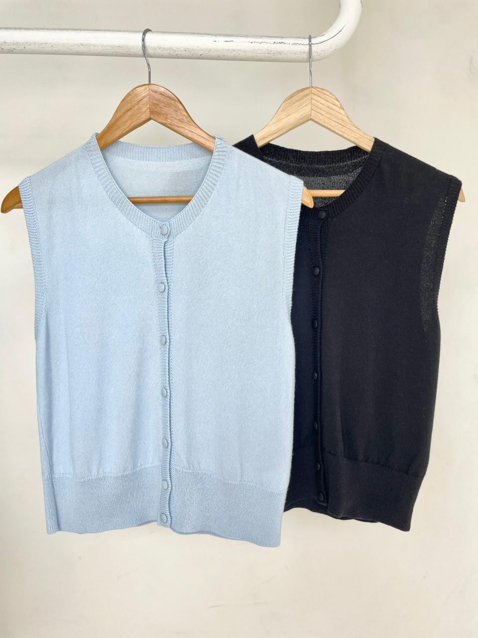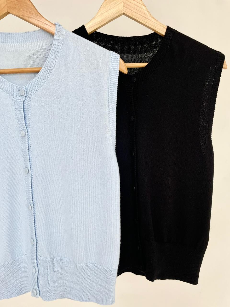 O Colete de Tricot Dandara é uma peça-chave para compor produções modernas, atemporais e sofisticadas. Em azul e preto , este modelo apresenta um design clean e elegante, ideal para usar sozinho ou como sobreposição. Confeccionado em tricot leve e de toque macio, o colete tem acabamento canelado na gola, barra e nas cavas, garantindo estrutura e caimento impecável. O destaque fica por conta dos botões forrados com o mesmo tecido, que adicionam um toque refinado e discreto à peça. A modelagem é reta, com comprimento na altura da cintura, valorizando a silhueta sem marcar.