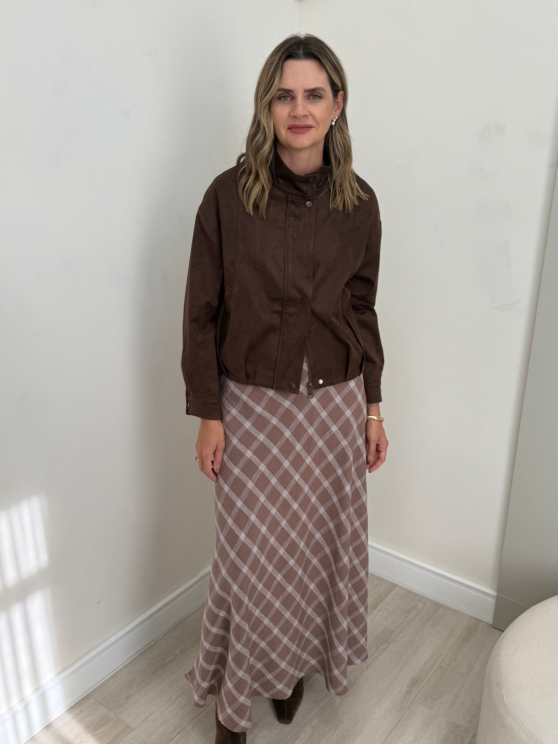 A Jaqueta de Camurça Maya é a combinação perfeita entre estilo contemporâneo e conforto. Confeccionada em poliéster com elastano, possui acabamento que remete à camurça, com textura macia e visual sofisticado. O forro interno garante melhor caimento, mais conforto ao vestir e acabamento premium. O design conta com gola alta estruturada, fechamento frontal por botões de pressão e recortes que valorizam a estrutura da jaqueta. O destaque fica por conta do franzido na barra, que cria efeito ajustado ao corpo, adiciona charme ao visual e proporciona melhor encaixe na silhueta.