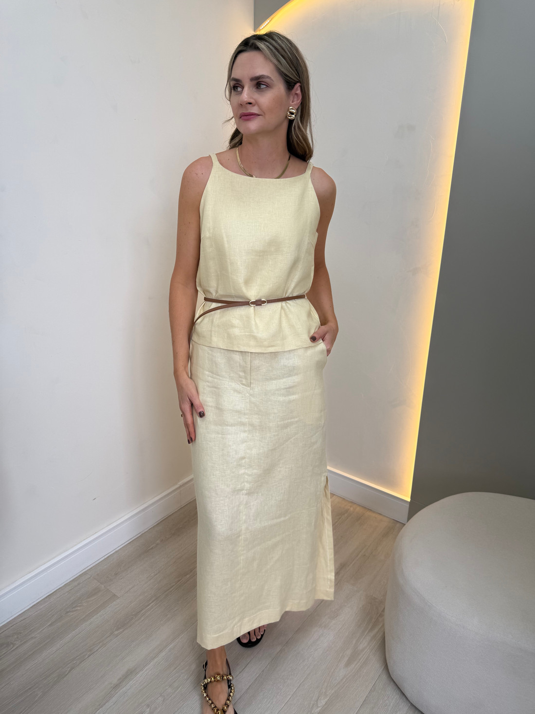 Confeccionada em 100% linho de alta qualidade, a Regata de Linho Valentina une leveza, conforto e elegância natural. Seu design minimalista apresenta decote reto e alças finas reguláveis, permitindo ajustar o caimento de forma prática para oferecer mais conforto e equilíbrio ao look. O tecido de linho, com sua textura levemente rústica e sofisticada, garante excelente respirabilidade — ideal para dias quentes. A modelagem solta proporciona um caimento suave que não marca o corpo, oferecendo frescor e liberdade de movimento ao longo do dia.