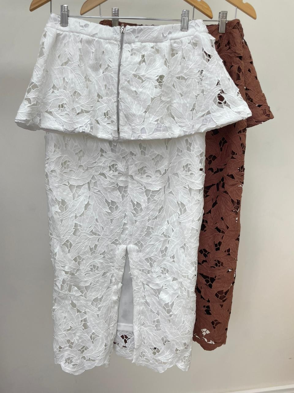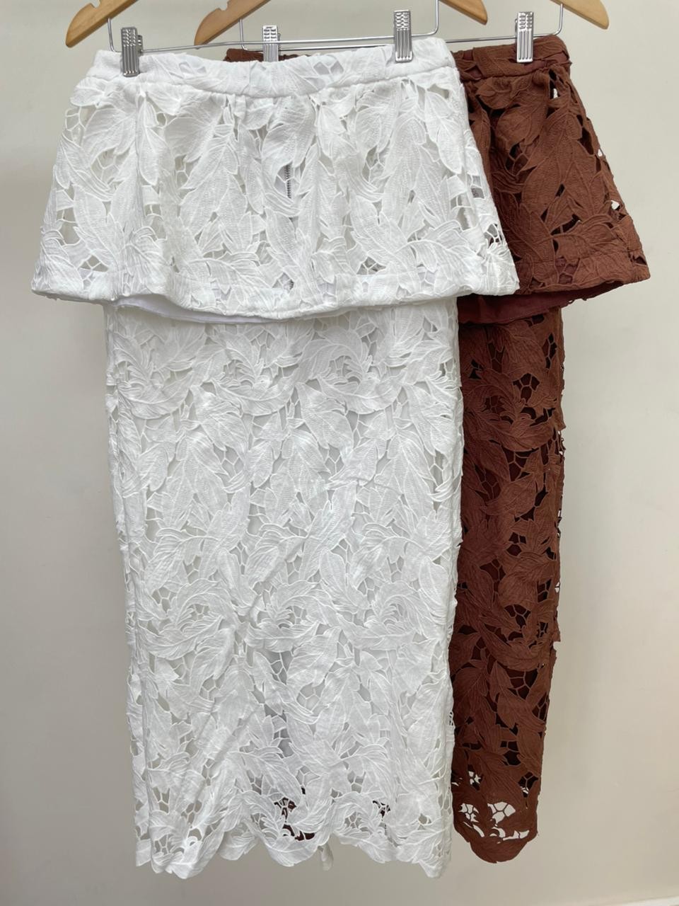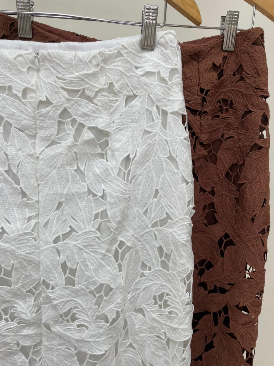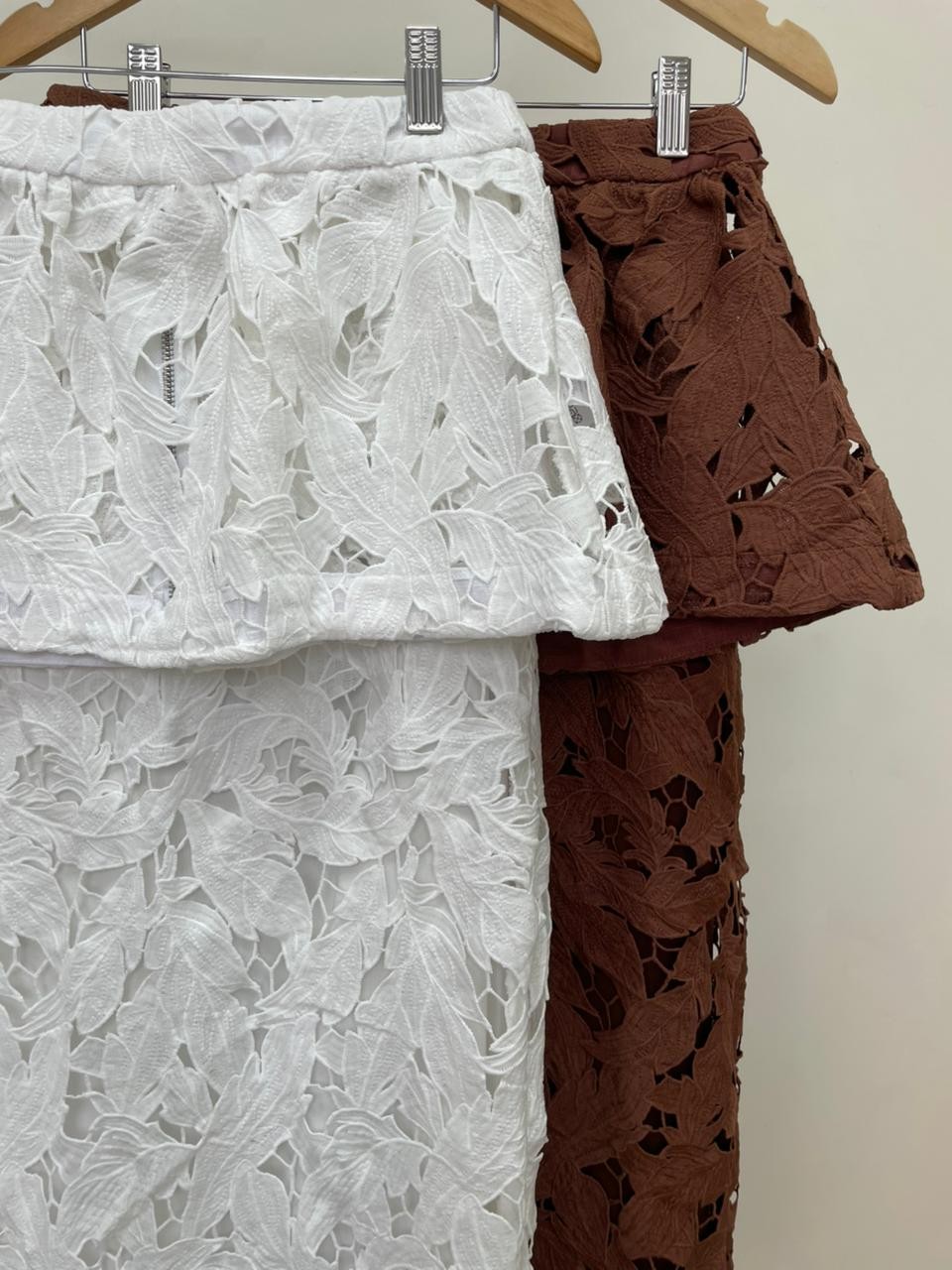 Confeccionado em laise floral, a Saia de Laise Antonella une modernidade e romantismo em uma proposta elegante e versátil. O conjunto é composto por duas peças que podem ser usadas juntas ou separadas, ampliando as possibilidades de styling com sofisticação. A primeira peça é uma saia midi reta com caimento impecável, que valoriza a silhueta com conforto. Possui cós com zíper invisível, pregas frontais, pence posterior, barbatanas estruturais e fenda discreta nas costas, além de forro embutido para garantir segurança e acabamento refinado. A segunda peça é uma saia curta de peplum com fechamento por zíper, que adiciona volume, leveza e feminilidade à produção. Juntas, formam uma composição sofisticada e cheia de personalidade, que transita entre eventos especiais e produções contemporâneas.
