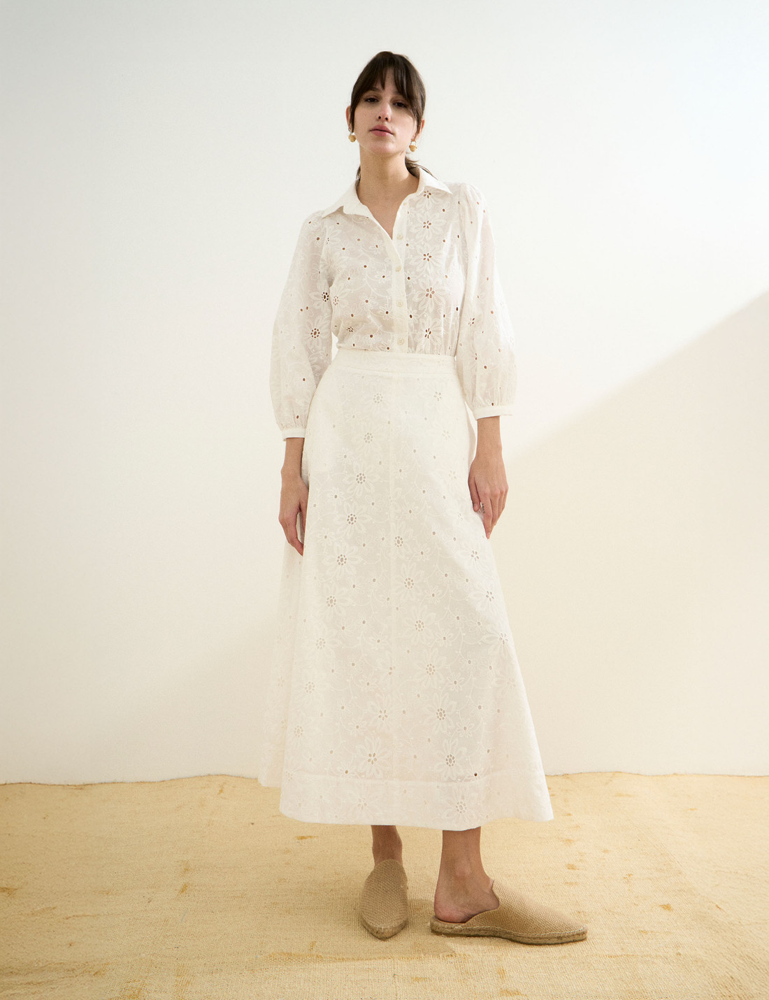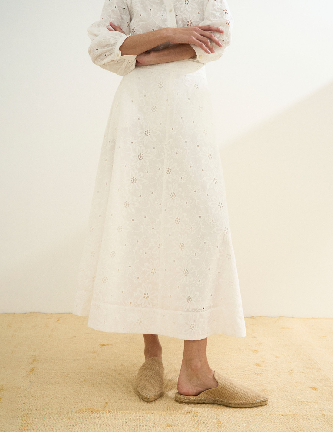 Confeccionada em laise com bordado floral e pequenos recortes vazados, a Saia Leslie combina delicadeza, modernidade e elegância em uma proposta atemporal. Com textura trabalhada e toque romântico, o tecido confere leveza e frescor ao visual, enquanto a modelagem ampla proporciona conforto sem abrir mão da sofisticação. O fechamento por zíper invisível mantém a estética limpa e minimalista, e o forro embutido garante segurança e discrição, evitando transparências indesejadas.