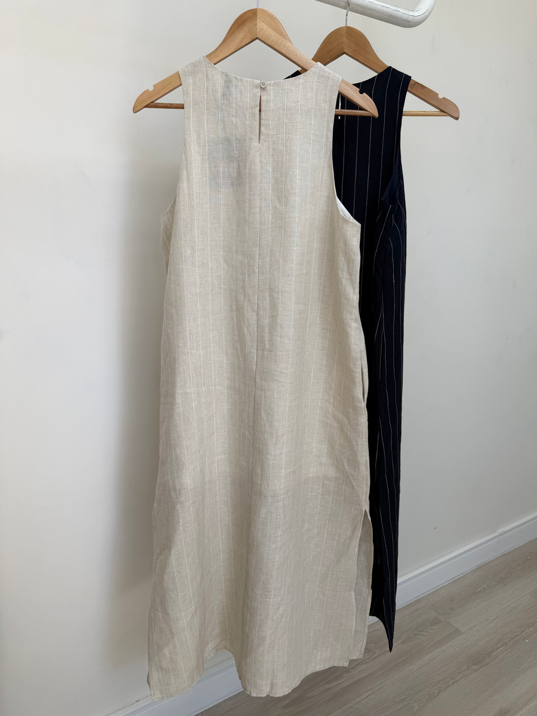 A leveza e a sofisticação se unem neste vestido de linho Ellen confeccionado em linho, tecido conhecido por seu toque fresco e caimento natural. Com forro interno, ele garante conforto e segurança ao vestir, mantendo a fluidez característica do linho. A modelagem reta e solta cria uma silhueta elegante e despretensiosa, perfeita para dias de calor ou ocasiões que pedem um visual clean e chic. As fendas laterais trazem movimento e um toque moderno, enquanto os bolsos embutidos acrescentam funcionalidade e charme casual.