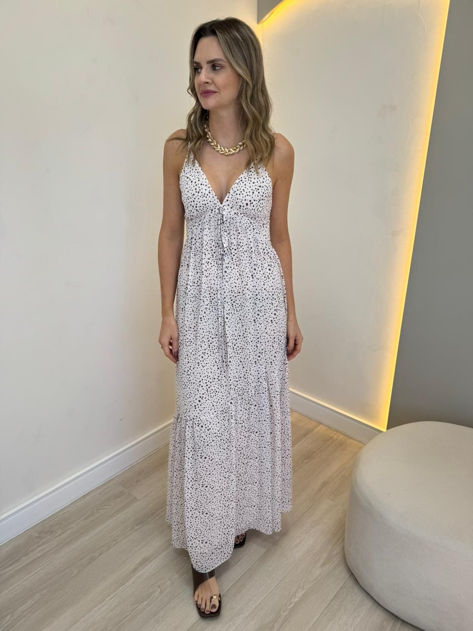 Delicado, feminino e cheio de movimento, o Vestido de Poá Esmeralda é a escolha perfeita para compor looks leves e elegantes em todas as estações. A peça se destaca pela estampa clássica de poá, que traz um ar retrô na medida certa, com um toque contemporâneo e sofisticado. Confeccionado em poliéster, possui decote em V frontal e alças finas, valorizando o colo com suavidade, enquanto o busto ajustado confere estrutura à parte superior. A cintura é suavemente marcada, realçando a silhueta sem apertar. O vestido conta ainda com forro interno, que garante conforto e segurança ao vestir, sem perder a leveza do tecido principal.