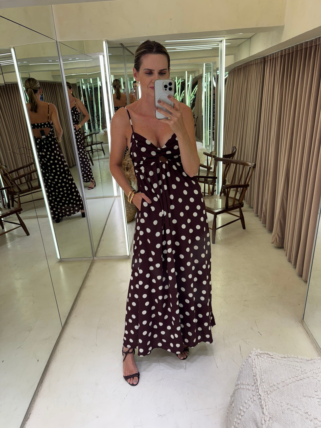 O Vestido de Poá Lissa é a escolha perfeita para quem busca sofisticação e elegância. Confeccionado em crepe, com padronagem poá que adiciona charme, ele garante fluidez, caimento elegante e visual atemporal. O modelo apresenta decote em V e franzidos na região do busto, que valorizam a silhueta com delicadeza. As alças finas com regulador e o elástico nas costas proporcionam ajuste perfeito e conforto ao vestir. A abertura frontal abaixo do decote adiciona um toque moderno, enquanto a saia ampla com franzidos confere movimento, leveza e elegância. O forro embutido garante acabamento refinado e conforto adicional.