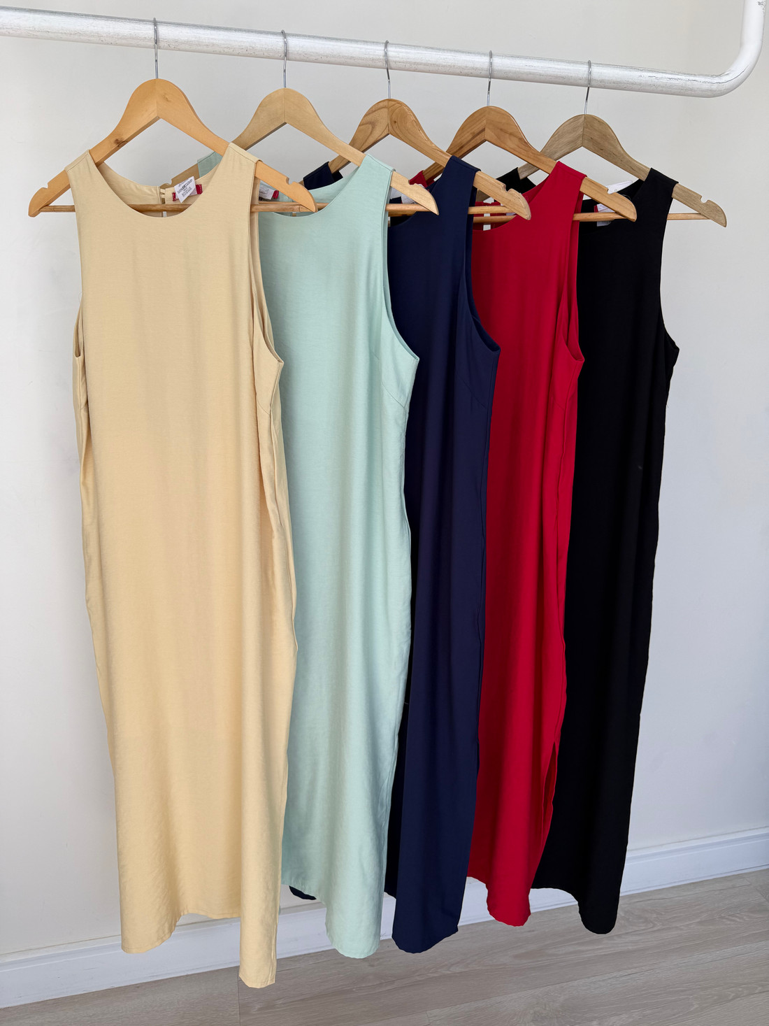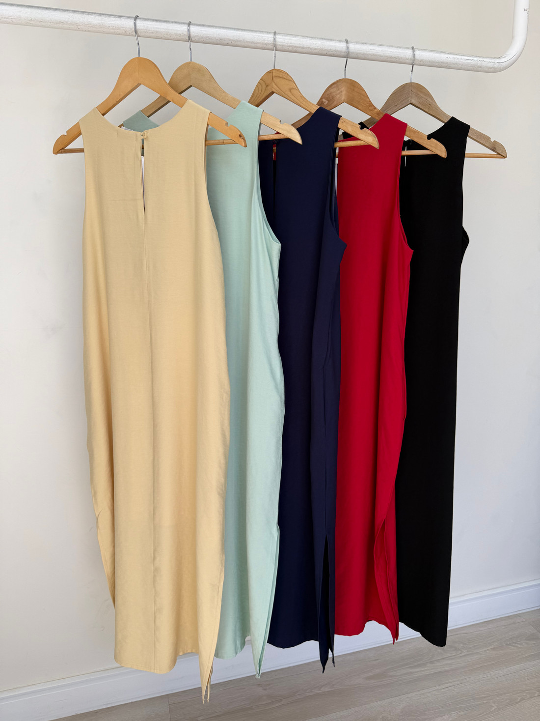 O vestido Tulum é confeccionado em viscose com poliéster, garantindo toque macio, fluidez e excelente vestibilidade. Sua modelagem reta alonga a silhueta e cria um visual sofisticado para diversas ocasiões. O modelo possui forro interno, oferecendo segurança e melhor acabamento, além de evitar transparências. As fendas laterais trazem mobilidade e um toque sutil de modernidade ao design clean. Na parte de trás, o vestido conta com fechamento por botão, que facilita o vestir e adiciona um detalhe delicado ao decote.